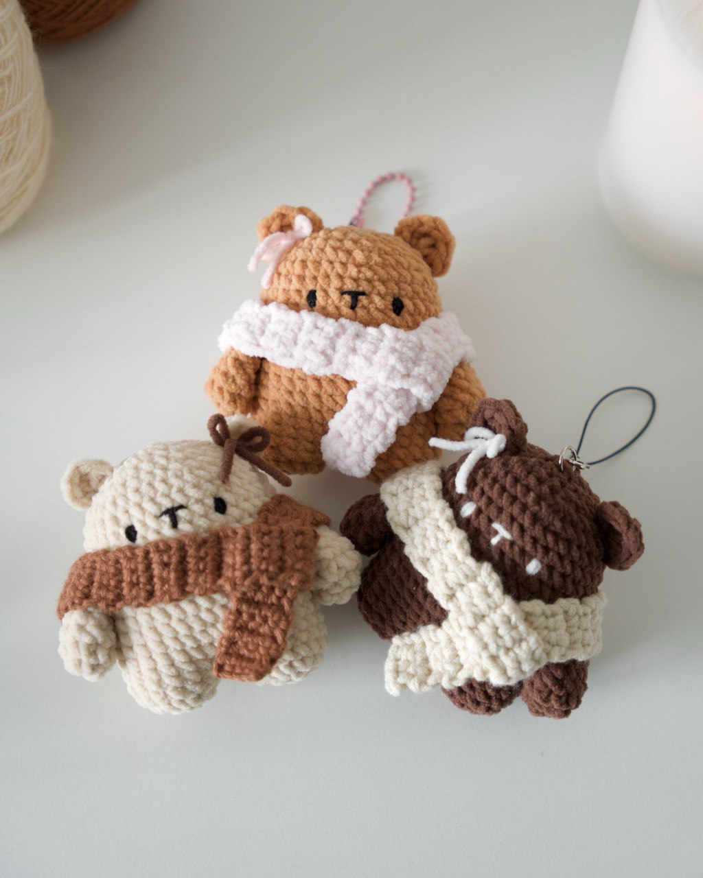 - Stuff the bodies a bit more, cut the yarn, and leave a long tail.