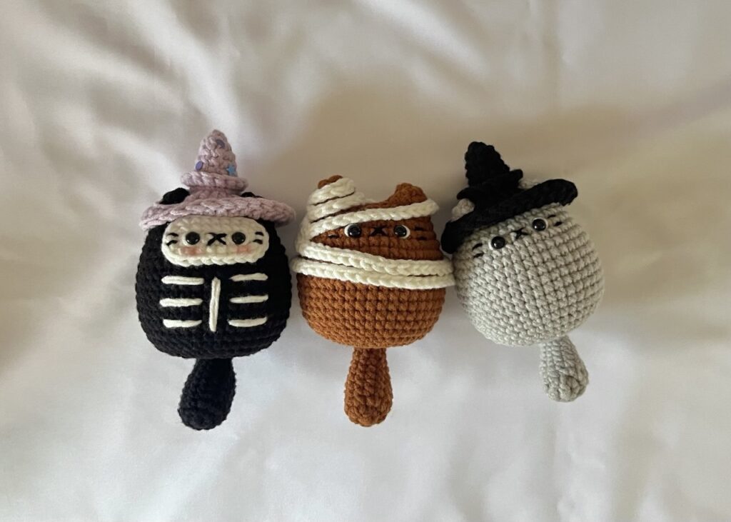 Before Halloween night sneaks up on us, I’ve prepared something special for you all! I have made three different Halloween-themed pouches, each with a unique touch. You can use them for candy, tiny gifts, or just as cute little seasonal decor. I had so much fun designing them, and I hope you’ll enjoy making them just as much! And if you remember my Halloween cats from last year, I LOVE YOU & HOW TIME FILES! Click here or hover over the image below to see the pattern for my adorable cats from 2024 that everyone loved.🎃🕸️